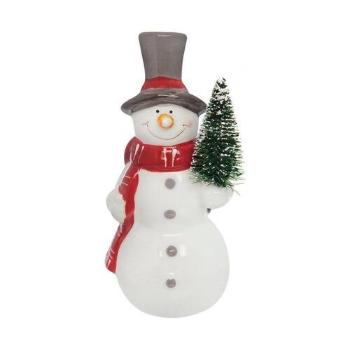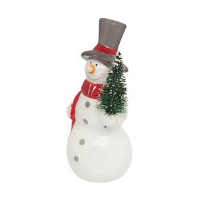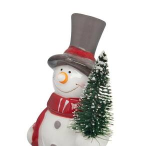 O Adorno Boneco de Neve Holiday Sowy tem 13 cm e é produzido em porcelana com acabamento esmaltado.