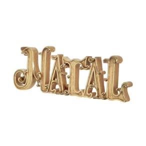 O Adorno Frase Joy Golden Natal tem 28 cm e é produzido em resina, na cor dourada.
