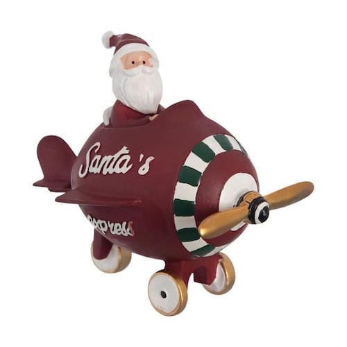 O Adorno Santa Holiday Plane tem 12 cm e é produzido em resina.