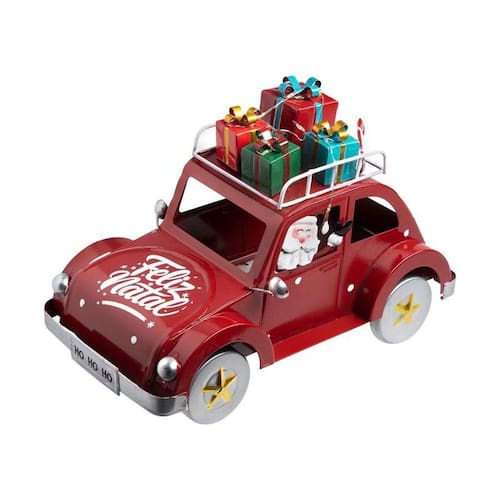 O Adorno Led Carro tem 27 cm e é produzido em metal com led interno que ilumina seus detalhes.
