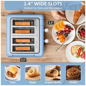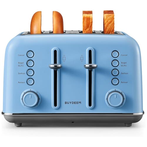 Seja um especialista em bagels e muffins com a torradeira BUYDEEM DT640! Com sua função exclusiva de tostagem de bagels, aquece ambos os lados inicialmente e depois tosta apenas o lado cortado, garantindo um bagel crocante. Possui 4 slots extra largos de 3,5 cm com guias auto-centralizadoras, ideais para diferentes tipos de pães. Com 7 opções de tostagem, atendendo a todas as suas necessidades diárias. Conta com 2 painéis de controle independentes para 4 fatias, permitindo escolher diferentes níveis de tostagem ao mesmo tempo. Além disso, seu design compacto e retrô economiza espaço na sua cozinha. Adquira já a sua e desfrute de um café da manhã perfeito!