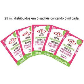 Informações/Dicas/Usos * Recomendado: Desde a fase inicial de desenvolvimento das plantas floriteras, até o início da floração * Modo de uso: Diluir cada sachê 5ml em 1 litro de água, resultando em um total de 5 litros de adubo pronto para uso.