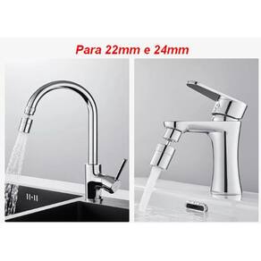 Especificações técnicas: - Rotação: 720 graus - Opções de jato: Espumoso ou Chuveirinho - Diâmetro compatível: 22mm à 24mm - Inclui 1 adaptador para torneira e 1 adaptador de rosca