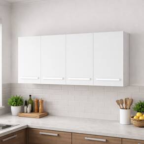 Fabricado em MDP, o armário possui 4 portas que oferecem amplo espaço para armazenar utensílios, pratos e outros itens essenciais. Com profundidade de 27 cm, altura de 52 cm e largura de 1,18 cm, ele se adapta facilmente a diferentes configurações de cozinha, otimizando o espaço vertical.