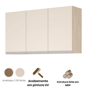 Aéreo 3 Portas Cozinha Isabela Amêndoa Off White