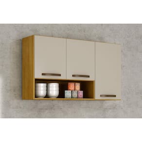 O Armário Aéreo 3 portas Melissa é ideal para complementar sua cozinha, um móvel versátil e elegante que auxilia na organização e acrescenta charme a sua cozinha. O Armário possui 3 portas com dobradiças metálicas para abrir e fechar com segurança, 1 prateleira e puxadores em abs bronze. Acabamento da Prateleira: Pintura UV Escala de Brilho da Prateleira: Semi-Brilho Acabamento da Porta: Pintura UV Escala de Brilho da Porta: Brilhante Material do Puxador da Porta: ABS Ambiente Principal: Cozinha codigo_ean: 7909903298466 Complexidade da Montagem: Alta: deve ser montado por um montador especializado Cor: Cinamomo/Off White Cor do Produto: Cinamomo/Off White Cor Interna: Cinamomo Escala de Brilho: Brilhante Informações Complementares: distribuídos Itens Inclusos: 1 Armário Aéreo, kit de ferragem e manual de montagem Manual de Montagem e Instalação: https://product-hub-prd.madeiramadeira.com.br/848095/documents/0e97f97b-8da4-4fb6-973b-fdc8eae14d86emademontagemaereomaisachf.pdf Material da Dobradiça/Corrediça da Porta: Metálica Material da Porta: MDP Material da Prateleira: MDP Necessita Montagem: Sim Origem do Produto: Nacional Peso: 20,4 kg Peso Máximo por Prateleira: 20.0000 Possui Espelho: Não Possui Possui Pés: Não Produto Montado: Sim Recomendações de Uso, Manutenção e Limpeza: Limpeza com pano umedecido. Não aplicar lustra móveis. Sapatas Niveladoras: Não Sistema de Montagem: parafusos e cavilhas Suporta Até (kg): 40 kg Tipo de Dobradiça/Corrediça da Porta: Simples Tipo de Puxador da Porta: Externo