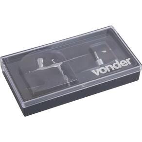 1 Aerógrafo com 10 acessórios, sendo: 1 pistola com copo, 1 minicompressor, 1 adaptador 100 V~ - 240 V~, 1 mangueira com 1,8 metros, 1 chave, 1 adaptador (1/4" NPT fêmea - 1/8" NPT macho), 2 conectores para mangueira (rosca 1/8? NPT fêmea com espigão 3/16?), 1 tubo de sucção e 1 suporte de apoio para aerógrafo