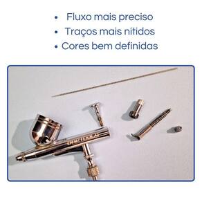 Aerógrafo onetools profill dupla ação copo fixo 0,5mm on05 O aerógrafo onetools profill 0,5mm possui uma estrutura mecânica projetada para um fluxo de tinta mais preciso, garantindo traços mais nítidos e cores bem definidas. Diferente de modelos comuns, o profill tem ajuste interno que regula melhor a saída de tinta, evitando excesso ou falhas na aplicação. Com o profill voce consegue ajustar a pressão do compressor de forma otimizada, garantindo o fluxo contínuo sem espirros ou borrões. - traços mais limpos e sem falhas Aerógrafo copo fixo - dupla ação 0,5mm - exclusividade tudo de ferramentas em parceria com a onetools - único aerógrafo do mercado do tipo gravidade com copo fixo que possui bico 0,5mm, ideal para trabalhos que usam tintas um pouco mais grossas, como barbearias por exemplo. Onetools Muito prático e versátil, essa ferramenta é ideal para trabalhos de pintura com precisão, como artesanato, artístico, bronzeamento a jato, aeromodelismos, culinária, pigmentação capilar, etc. Leve e prático, perfeito para atender sua necessidade. Itens inclusos - caneta aerógrafo dupla ação bico 0,5mm copo fixo - conector para mangueira de ar - chave - estojo plástico Especificações - pressão de trabalho - 15 a 50 psi - rosca entrada de ar - 1/8 bsp Temos também a mangueira para esse modelo, consulte-nos. Marca: Não Informado