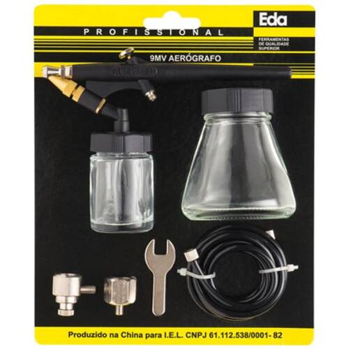 Aerógrafo pneumático tipo caneta - eda aerógrafo extremamente prático de usar. De ótima qualidade, acompanha mangueira de ar, válvula adaptadora para refil de ar comprimido e adaptador para compressor, além de recipientes para preparo e armazenamento da tinta. - marca: eda - modelo: 9mv - ótima qualidade e acabamento - frascos de vidro - leve e portátil - spray padrão ajustável de 1/4" a 1" para máxima versatilidade - pressão: 15-50 psi - peso: 270g - dimensões da embalagem: 20cm x 16cm - garantia: 90 dias obs: deve ser utilizado com compressor tufão de 40 libras ou compressor de reservatório. Itens inclusos: - 1 aerógrafo de ação simples - 1 mangueira de ar - 1 reservatório de tinta: 20ml - 1 recipiente para preparo de tinta: 56ml - 1 adaptador 1/4" para compressor - 1 válvula adaptadora para refil de ar comprimido - 1 chave para montagem e desmontagem - atenção. Esta ferramenta só pode ser utilizada se conectada a um compresso Ean: 7895315013943