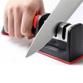 Fácil e prático de manusear, basta segurar o afiador com uma mão e com a outra passar a faca, afiando de forma segura e rápida.