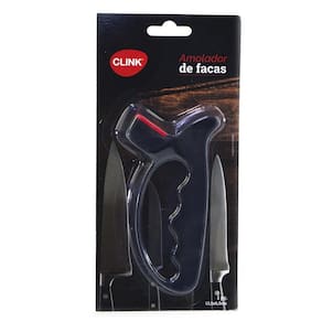 Afiador Amolador de Faca 13cm Preto Afie suas facas com praticidade, segurança e resultado profissional! O Afiador de Facas é compacto, leve e extremamente eficiente. Com sistema de afiação dupla e design ergonômico, ele é ideal para uso doméstico ou em cozinhas profissionais que exigem lâminas sempre afiadas. Basta passar a faca de 3 a 5 vezes em cada estágio, sem necessidade de força ou habilidade técnica. Finaliza o processo, alinhando e polindo o fio da faca para um corte preciso, Cabo anatômico que garante firmeza e conforto durante a afiação, Mantém o afiador fixo na superfície, garantindo mais segurança no manuseio.\nEspecificações: Marca : CLINK Tipo de material : Ferro, Plástico Cores ou Estampa : Preto Dimensões do Produto : 13 X 6,5 X 2 CM Peso Bruto (Gramas) : 0.058 O que vem na embalagem 1 Afiador Amolador de Faca 13cm Preto Marca: Não Informado