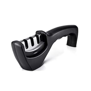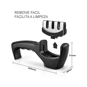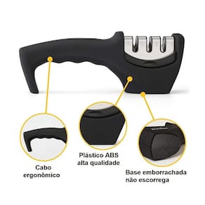Praticidade e facilidade para afiar sua faca em 3 opções. Você não precisará mais amolar sua faca com pedras ruins, ou ter que levar em algum especialista para amolar. Esse afiador de facas é sensacional, um produto perfeito para quem preza por um corte perfeito e com uma excelente precisão, resultando em maior facilidade e praticidade em sua cozinha. Serve para pessoas canhotas ou destras, possui apoio emborrachado para dar firmeza ao amolar sua faca proporcionando mais segurança. - 3 estágios: Afiar, Amolar e Acabamento; - Afiador removível. Ean: 2010000002025