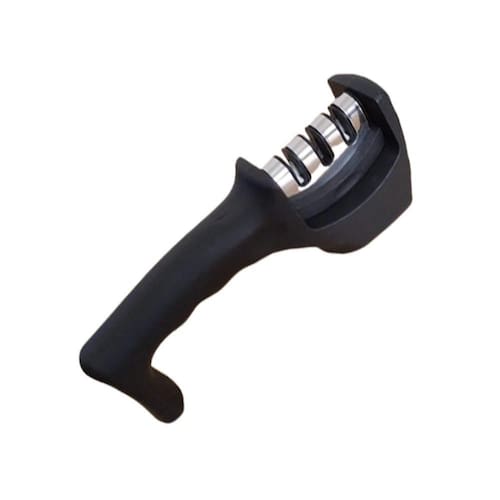 Modo de usar: Passe a lâmina da faca pelo afiador, até que ela fique afiada.