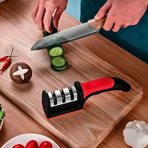 Afiador de Facas com Três Estágios de Afiação, projetado para oferecer desempenho , segurança e praticidade em qualquer ambiente. Ideal para quem busca manter as facas sempre afiadas, seja em casa, na cozinha ou em atividades ao ar livre como acampamentos.