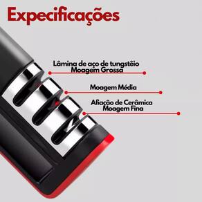 - Corpo Principal: Construído em materiais de alta resistência para garantir durabilidade.- Lâminas de Afiamento: Feitas de aço tungstênio de alta qualidade para proporcionar uma afiação eficiente.- Fácil de usar: Com um design intuitivo, basta deslizar a lâmina pela abertura do amolador para revitalizar o fio da faca. Sem complicações ou habilidades específicas.- Grosseiro: Utiliza abrasivos mais grossos para corrigir bordas cegas, amassadas ou danificadas- Médio: Utiliza abrasivos mais finos para aprimorar a afiação, removendo pequenas imperfeições- Fino: Utiliza abrasivos ultrafinos para polir a lâmina, proporcionando uma nitidez excepcional.- Iniciais: Possui slots específicos para o estágio de afiação grosseira e média.- Final de Polimento: Geralmente uma ranhura adicional ou um sistema de polimento para a etapa final- Antiderrapante: Equipado com uma base que evita deslizamentos durante o uso, garantindo segurança e estabilidade- Cabo Confortável: Oferece uma alça ergonômica para facilitar o manuseio e minimizar a fadiga durante o uso prolongado- Versatilidade de Uso: Compatível com uma variedade de facas, incluindo facas de chef, facas para legumes e tesouras de cozinha. Proporciona um fio refinado em poucos instantesInstruções