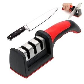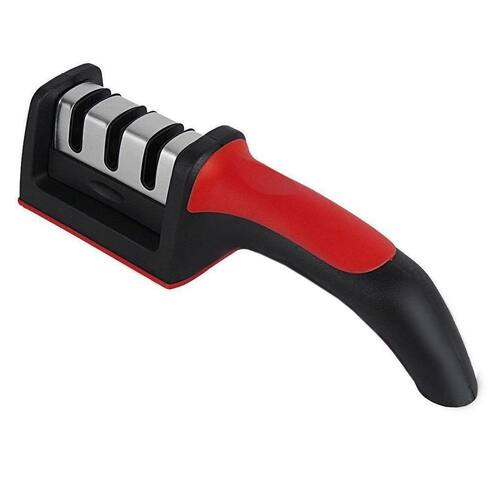 O afiador apresenta um design ergonômico que se encaixa confortavelmente na mão, permitindo que o usuário afie suas facas com facilidade e precisão. Possui duas fases de afiação, a primeira fase é de afiação grossa e a segunda é de afiação fina, para polir e dar um acabamento mais afiado.