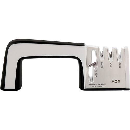 3 etapas de afiação: iniciar, onde se prepara para afiação. Afiar, onde é realizada de fato a afiação das facas, e por último, polidor para garantir o brilho dos itens. Base emborrachada: evita que escorregue e cause acidentes, além de ser facilmente guardado ou até mesmo deixado em cima de balcões ou pias. O afiador de facas e tesouras mor otimiza o espaço na gaveta e mantém os utensílios sempre prontos para o uso. Com ele é possível afiar tanto as facas quanto as tesouras de forma rápida e eficiente. Com.