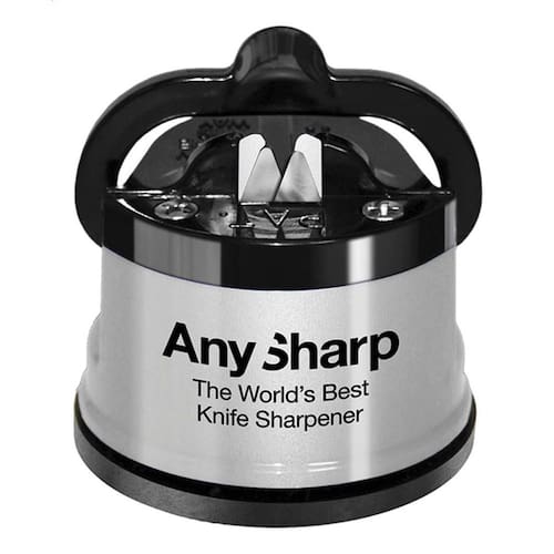 O Afiador de Facas de Tungstênio AnySharp é indicado para afiar facas de aço endurecido e facas do chef, como as marcas Global e Sabatier. Além disso, também é capaz de afiar outros tipos de facas, como facas de pão e facas de caça. Mesmo as facas com lâminas serrilhadas podem ser afiadas com o AnySharp.