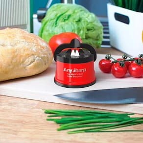 Tudo o que você precisa fazer é deslizar suavemente a lâmina através das arestas de afiação de carboneto de tungstênio, 3 ou 4 vezes para obter uma aresta de corte super afiada. Lembre-se, é preciso muito pouca pressão com o AnySharp e limpe a faca antes de usar.