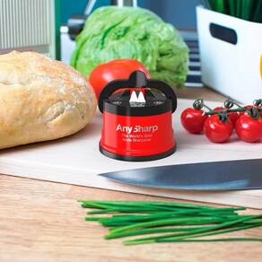 Afiador De Facas Anysharp VermelhoMarca: AnySharp OriginalAfia facas retas e serrilhadas com mais segurança.Lâminas de carbeto de tungstênio - Suas lâminas são vitalícias (Não se desgastam)Afiador de Facas AnySharp. Um afiador de carbeto de tungstênio, qualidade e funcional Realmente Afia a sua FacaNenhuma habilidade necessária - qualquer um pode obter excelentes resultadosO ângulo ideal para afiar uma faca de aço de boa qualidade é de 20 graus. Anysharp é predefinido a 20 graus para dar uma vantagem perfeita sempre. Obter um ângulo consistente com uma pedra de afiação é um trabalho habilidoso, mas AnySharp permite que qualquer pessoa obtenha resultados profissionais sem qualquer treinamento. Tudo o que você precisa fazer é deslizar suavemente a lâmina através das arestas de afiação de carboneto de tungstênio, 3 ou 4 vezes para obter uma aresta de corte super afiada. Lembre-se, é preciso muito pouca pressão com o AnySharp e limpe a faca antes de usar.ATENÇÃO O grande diferencial do Anysharp é sua lâmina super afiada em carbeto de tungstênio, que faz um novo fio na sua faca. As imitações - embora parecidas - têm lâmina de aço - e funcionam como os afiadores comuns.Características: Peso: 0,065 kg Diâmetro: 6 cm Altura: 7 cm