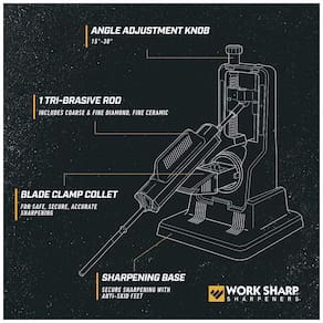 O afiador de facas de ajuste de precisão Work Sharp é um afiador de facas abrasivo de 3 lados guiado por ângulo que torna a afiação manual mais rápida, fácil e precisa do que nunca. AJUSTÁVEL, REPETÍVEL O ângulo de afiação pode ser facilmente ajustado de 15 a 30, em incrementos de 1. HASTE TRI BRASIVO Indexa rapidamente entre diamante grosso e fino e pedra cerâmica fina. O grampo removível prende a faca com segurança e consistência Marca: Não Informado