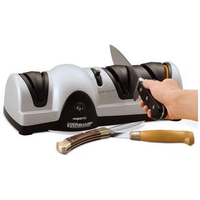 Sistema de afiação fácil de 3 estágios para resultados profissionais em casa, a qualquer hora. Afia facas de cozinha e esportivas, até mesmo facas Santoku. O seletor de espessura da lâmina ajusta as guias para um ângulo de nitidez ideal. Selecione espesso para facas de caça, médio para facas de chef e facas de cozinha padrão e fino para lâminas leves como filé e facas de aparar. As guias da lâmina seguram a faca em um ângulo perfeito para um afiamento improvisado. A roda de cerâmica de grão extrafino afia a lâmina em uma lâmina afiada. Sistema de nitidez de três estágios para resultados profissionais em casa Marca: Não Informado