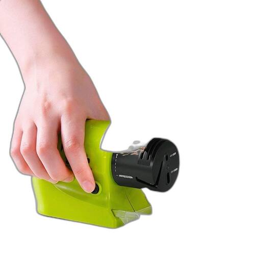 Afiador elétrico portátil, multifuncional, sem fio. Equipado com pedra de amolar de alta velocidade. Possui acessório removível e coletor de pó.Tipo