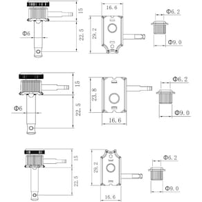 Peças de grau para guitarras elétricas ou acústicas ou instrumentos de precisão. - Fácil de instalar, ajuste rápido e preciso. - Durável e altamente confiável para ajuste fácil, suave e preciso. - Feito de materiais sólidos com um visual elegante e profissional. - Oferece ajuste mais fino e maior estabilidade. - Conjunto de 6 afinadores de guitarra, 6 para mão direita. - Com equipamento interno resistente. - 9 cores disponíveis: cromo, bronze antigo, preto, níquel, preto + ouro, vermelho + ouro, rosa + ouro, azul + rosa, azul + ouro - Número do modelo: : GK55SP Especificações técnicas: - Array: 6R (para guitarra direita) - Relação de engrenagem de guitarra = 1:15 - Requisito de furo de pino = 9 mm - Diâmetro do pino da corda = 6 mm - Máx. Calibre da corda = 1,8 mm - Altura Ctr do Furo da Corda = 22,5 mm - Tipo de bucha = cabeça sextavada rosqueada A embalagem inclui: 6 cabeças de máquina de guitarra (6 para destros) Ferragens de montagem (parafusos, buchas roscadas e virolas) incluídas - O pacote inclui: 6 peças (6 destros) pinos de afinadores de guitarra com trava, 7 parafusos de montagem e 6 buchas roscadas, boa substituição compatível com guitarras elétricas, folclóricas ou acústicas estilo LP, SG, TL. - Máquinas de afinação seladas para guitarra com equipamento interno resistente, resistente e conveniente. Fácil de instalar, fácil de substituir seus pinos de afinação de guitarra antigos ou sujos. - Guyker Os sintonizadores de bloqueio ajudam a proporcionar um ajuste mais fino e maior estabilidade. - Botão oval com invólucro selado. Banhado a cor dopamina atraente. - Relação de engrenagem - 1:15, projetada para caber em orifícios modernos de cabeçote de 9 mm. Verifique o desenho de parâmetros nas fotos anexadas antes de fazer seu pedido.