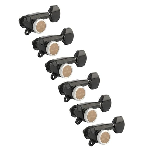 Buchas hexagonais rosqueadas e - parafusos de montagem (6 cada) incluídos Conjunto de 6 sintonizadores em linha - Funcionalidade tradicional de travamento em estilo de parafuso manual com tecnologia Gotoh - Os sintonizadores de travamento são excelentes para guitarras tremolo sem travamento e