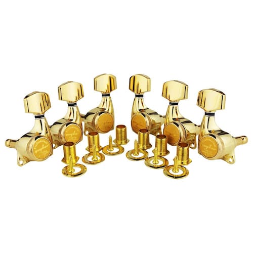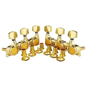 peças (3 para a direita, 3 para a mão esquerda), pinos de afinadores de guitarra com travamento, 6 parafusos de montagem, 6 buchas rosqueadas e 6 ponteiras, um bom substituto para guitarras quase elétricas ou acústicas.