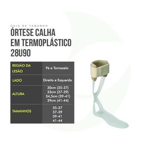 Descrição Comercial: Com a órtese de tornozelo 28U90 auxiliar de dorsiflexão, a porção anterior do pé é elevada e a limitação passiva e flexível da flexão plantar é fornecida em caso de fraqueza peroneal.. . O design de paredes finas com uma superfície de alta qualidade aumenta a resiliência. Isso permite um suporte efetivo com baixo peso.. . A sola longa garante a orientação exata do pé e boa distribuição de pressão.. . A órtese de tornozelo 28U90 foi projetada para uso rápido e temporário como ajuste inicial, por exemplo, após uma lesão. Uma vez que é fácil de adaptar, é particularmente adequado para a mobilização precoce do paciente.. . O novo sistema de fechamento é inovador, sendo equipado com fechos de gancho e laço, tanto à esquerda como à direita, tornando a órtese adequada para uso em ambos os lados. . . A almofada também é lavável e pode ser substituída por uma nova a qualquer momento.. . CARACTERÍSTICAS DA AFO ÓRTESE DE TORNOZELO 28U90. Baixo peso. Termomoldável. Bloco substituível. Limitação passiva e flexível da flexão plantar. Sola longa para orientação exata do pé. Boas propriedades higiênicas