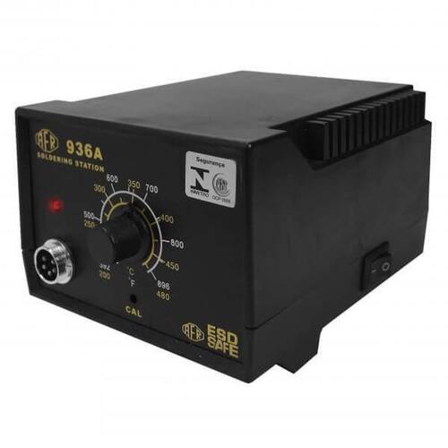 Estação de solda - modelo analógico Ideal para quem busca praticidade, agilidade e segurança para trabalhar nos seus reparos da maneira funcional aumentando significativamente a precisão e a agilidade durante seus processos de soldagem. Para maior conforto o cabo do ferro de solda da estação afr 936-a é produzido em material flexível que proporciona maior liberdade de movimento. Para maior segurança do operador o ferro de solda possui partes emborrachadas para melhor aderência junto às mãos, evitando possíveis escapadas e danos tanto a sua estação de solda quanto ao operador que estará lhe utilizando no momento. Desenvolvida para profissionais da eletrônica, através do padrão esd safe a estação de solda afr 936-a possui uma série de ajustes que possibilitam maior segurança ao operador. Para garantir maior usabilidade e segurança durante os processos de soldagem, a estação de solda afr 936-a possui inclusa em sua embalagem uma base metálica para apoio do ferro de solda enquanto o mesmo não estiver sendo utilizado, além de uma esponja vegetal utilizada para efetuar a limpeza da ponta de solda para evitar danos e deterioramento da mesma. A estação afr 936-a conta com ajuste de temperatura analógico que varia na faixa de 200 a 480ºc. Especificações: - modelo esd dissipativo ; - potência: 50w; - tensão de entrada: 110v ou 220v; - temperatura: 200 - 480ºc ; - resistência cerâmica - 24v; - ferro, ponta e estação aterrados; - ajuste de calibração; - dimensões: 170 x 120 x 93mm; - peso aproximado: 1,4 kg. 2 anos de contra defeitos de fabricação Marca: Não Informado