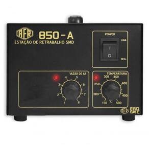 Estação de retrabalho - modelo analógicoPossui controle de temperatura e vazão de ar. Foi especialmente desenvolvida para técnicos profissionais, no retrabalho em placas eletrônicas e componentes smd. Possui resfriamento automático e certificado inmetro.É ideal para trabalhos com componentes smd e até mesmo bga, a estação afr garante alta precisão no controle de temperatura do canhão de arRetrabalho ar quente Controle da temperatura na faixa de 150 a 500 c; Precisão de controle da temperatura: menor que 2% Gabinete esd dissipativo; Resfriamento automático; Bomba tipo diafragma; Vazão de ar: 0,3 - 24,0 l/min. ajustável ; Resistência: 250 watts Bomba consumo: 45 watts; Consumo total: 270 watts para 127v / 340w para 220v Tensão: 127 ou 220 volts; Terceiro fio de aterramento;2 anos de garantia contra defeitos de fabricação