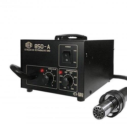 Estação de retrabalho - modelo analógicoPossui controle de temperatura e vazão de ar. Foi especialmente desenvolvida para técnicos profissionais, no retrabalho em placas eletrônicas e componentes smd. Possui resfriamento automático e certificado inmetro.É ideal para trabalhos com componentes smd e até mesmo bga, a estação afr garante alta precisão no controle de temperatura do canhão de arRetrabalho ar quente Controle da temperatura na faixa de 150 a 500 c; Precisão de controle da temperatura: menor que 2% Gabinete esd dissipativo; Resfriamento automático; Bomba tipo diafragma; Vazão de ar: 0,3 - 24,0 l/min. ajustável ; Resistência: 250 watts Bomba consumo: 45 watts; Consumo total: 270 watts para 127v / 340w para 220v Tensão: 127 ou 220 volts; Terceiro fio de aterramento; 2 anos de garantia contra defeitos de fabricação