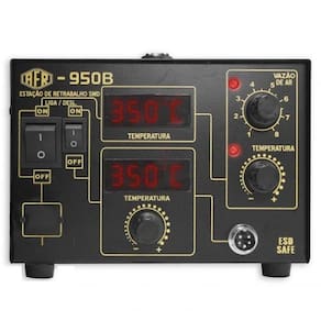A estação dupla afr é ideal para quem trabalha com eletrônica e necessita de uma estação específica para ressoldagens e troca de componentes smd e pth. Sendo 2 em 1 ela possui controle de temperatura no canhão de ar para smd e controle de temperatura no ferro de solda para pth . Possui certificado do inmetro. Estação digital para retrabalho com display de 3 dígitos.
