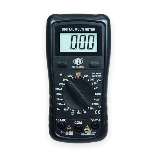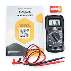 - 1 Bateria 9V - Display LCD - Mudança de Faixa: Manual - Tensão DC: 200mV/2V/20V/200V/600V - Tensão AC: 200V/600V - Corrente DC: 200uA/2mA/20mA/200mA/10A - Resistência: 200/2K/20K/2M/ohms - Teste de Continuidade: Sim - Teste de Diodo: Sim - Indicação de Bateria: Sim - NCV non-contact Voltage: Sim - Data Hold: SIM - Backligt: Sim - Proteção de Função: Sim - Fusível 10A: Sim - Proteção Contra impacto: Sim - True RMS: Sim - Imput Impedance: 10M ohms - Sampling rate: 3 times/s - AC Frequence Response: 50-200 Hz - Dimensões: 138 A x 68 L x 30 P mm. - Peso: Aprox. 110g incluindo bateria .