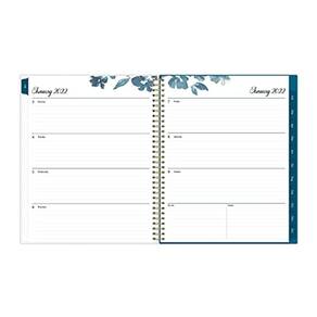 Planeje seu ano em grande estilo com os delicados florais e cores suaves da coleção Bakah Blue do ano civil de 2022. Este elegante planejador semanal e mensal irá mantê-lo organizado onde quer que vá. Designs de páginas simples adicionam um toque de sofisticação e oferecem muito espaço para todas as suas informações importantes. Projetadas com praticidade e facilidade de uso em mente, as guias mensais do calendário desta agenda floral permitem fácil acesso aos planos de cada mês, enquanto as visualizações semanais oferecem amplo espaço de escrita para detalhar cada dia. O white paper de alta qualidade fornece espaço de escrita limpo para anotar seus compromissos, tarefas e lembretes. Use este planejador datado para acompanhar seus compromissos e anotar anotações e ideias em um só lugar. As divisórias revestidas com abas duráveis são duradouras e facilitam o acesso à informação. Coberturas de qualidade premium e ligação de fio duplo proporcionam durabilidade confiável para uso diário. Mantenha-se no caminho certo durante todo o ano com este planejador 8,5 x 11 datado de janeiro de 2022 a dezembro de 2022. Misture e combine com outros produtos de planejamento da Bakah Blue Collection da Blue Sky para organizar sua vida diária. A Blue Sky cria planejadores e calendários organizacionais modernos e sofisticados para atender às necessidades de agendamento de pessoas ocupadas - seja para profissionais de negócios, estudantes universitários, professores ou qualquer pessoa com compromissos para anotar. Mantenha sua vida organizada com nossa linha completa de produtos, incluindo calendários de mesa, planejadores semanais e mensais com guias com contatos e páginas de anotações para acomodar suas necessidades de agendamento e calendários de parede laminados de dois lados, tudo em uma variedade de cores e padrões para se adequar ao seu estilo de vida e personalidade.