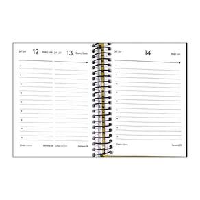 A agenda mini espiral compacta é a definição de praticidade. Seus detalhes em verniz e opções de cores mais sóbrias trazem modernidade ao seu público. Ideal para organização do dia a dia e ambientes corporativos. Detalhes: capa dura e laminação fosca com verniz localizado formato: 123 x 170mm miolo em 2 idiomas: português e espanhol número de folhas: 176 visão de 1 dia por página, exceto sábado e domingo atenção: imagem meramente ilustrativa. Pode ocorrer mudanças no tom da cor para o produto real ou mudanças na embalagem sem aviso prévio por parte do fornecedor/fabricante.