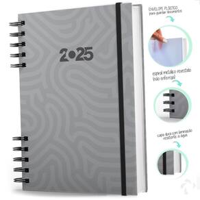 Agenda Capa Dura e Organização Pessoal Waves Cinza Agenda Planejamento 2025 da Nisti Print