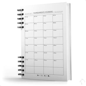 Possui a miniatura do calendário do mês ao final de cada página e um campo destinado para pequenas anotações.
