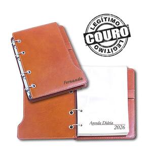 Agenda 2026 em Couro contendo: -ferragem 4 argolas -porta-caneta Caneta não inclusa -336 págs. Em papel off set 63gr. - 8 págs. Em papel couché 115gr. Índice Telefônico. Dados Pessoais e pág. De anotações -calendário 2025, 2026 e 2027 -mapas em Papel Couché Medidas aberto: 32,5 x 22,5 cm Medidas fechado: 17,5 x 22,5 cm com lombada de 4cm Marca: Não Informado