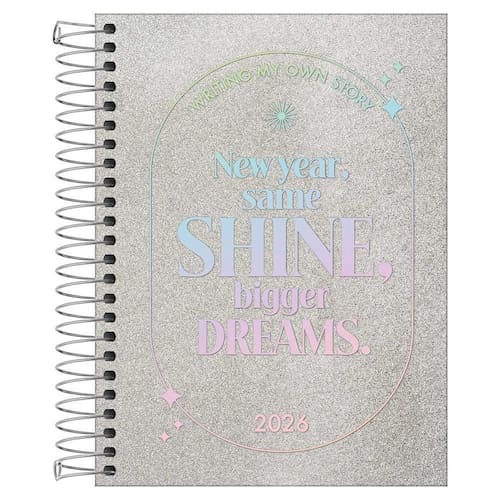 Se você busca um produto inspirado nas principais tendências de moda para se organizar, a agenda espiralada shine da tilibra é a escolha perfeita. O produto tem tamanho 11,7 x 16,4 cm, capa dura revestida com material especial brilhante e detalhes metalizados, bolsa de papel, adesivos em dobro e folhas com visão de 1 dia por página, exceto aos sábados e domingos. Esta agenda 2026, que possui 176 folhas, é escolha ideal para manter todas as tarefas e compromissos bem programados. Detalhes: bolsa: de papel decorada capa: com material especial e dura capa acabamento: com detalhe holográfico conteúdo: controle financeiro e listas folha de adesivos: dupla material: especial produto certificado: fsc visão: diária exceto sábado e domingo formato: 117mm x 164mm gramatura: 63 g/m número de folhas: 176 folhas atenção: imagem meramente ilustrativa. Pode ocorrer mudanças no tom da cor da tela do celular/pc para o produto real ou mudanças na embalagem do produto sem aviso prévio por parte do fabricante.