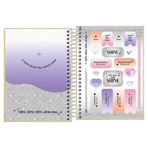 Se você busca um produto inspirado nas principais tendências de moda para se organizar, a agenda espiralada shine da tilibra é a escolha perfeita. O produto tem tamanho 11,7 x 16,4 cm, capa dura revestida com material especial brilhante e detalhes metalizados, bolsa de papel, adesivos em dobro e folhas com visão de 1 dia por página, exceto aos sábados e domingos. Esta agenda 2026, que possui 176 folhas, é escolha ideal para manter todas as tarefas e compromissos bem programados. Detalhes: bolsa: de papel decorada capa: com material especial e dura capa acabamento: com detalhe holográfico conteúdo: controle financeiro e listas folha de adesivos: dupla material: especial produto certificado: fsc visão: diária exceto sábado e domingo formato: 117mm x 164mm gramatura: 63 g/m número de folhas: 176 folhas atenção: imagem meramente ilustrativa. Pode ocorrer mudanças no tom da cor da tela do celular/pc para o produto real ou mudanças na embalagem do produto sem aviso prévio por parte do fabricante. Ean: 9789870017745