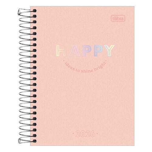 Se você busca um produto inspirado nas principais tendências de moda para se organizar, a agenda espiralada happy da tilibra é a escolha perfeita. O produto tem tamanho 11,7 x 16,4 cm, capa dura com detalhes metalizados, bolsa de papel, adesivos e folhas com visão de 1 dia por página, exceto aos sábados e domingos. Esta agenda 2026, que possui 176 folhas, é escolha ideal para manter todas as tarefas e compromissos bem programados. Detalhes: capa: dura capa acabamento: com detalhe metalizado conteúdo: controle financeiro, metas e objetivos e qr code com dicas e informações relacionadas à temática da marca espiral: colorido folha de adesivos folhas: decoradas material: capa dura com acabamento metalizado parte interna da capa decorada produto certificado: fsc visão: diária exceto sábado e domingo formato: 117mm x 164mm gramatura: 63 g/m número de folhas: 176 folhas atenção: imagem meramente ilustrativa. Pode ocorrer mudanças no tom da cor da tela do celular/pc para o produto real ou mudanças na embalagem do produto sem aviso prévio por parte do fabricante.