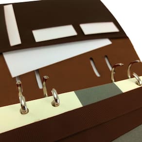 • Medidas 165 x 210 mm fechada, com aba para papéis e fechamento por botão magnético.