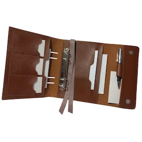 • Medidas 170 x 210 mm fechada, com aba para papéis, três porta cartões, fechamento por dois botões magnéticos e cortes frontais à laser para acomodação da ferragem.