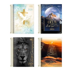 A Agenda Espiral Diária 12,9 x 18,7 cm Louvor 2025 tem visão de 1 dia por página. O produto tem capa dura, acabamento espiral e 208 folhas.
