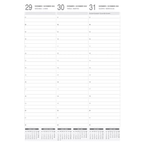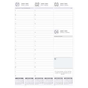 - Ano: 2025. - Cor: Preta . - Atributos: Agenda anual 3 dias por página (exceto sábado e domingo). - Acessórios: Fitilho marcador de páginas. - Capa: Dura, Material Sintético, Gravação em Baixo Relevo. - Capa acabamento: Lombada Costurada. - Formato cm: 20 x 27,5 -Horário das 7h ás 22h. - Marcação 30-30 minutos. - Produto Certificado: FSC® Misto.