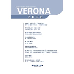 VERONA é uma agenda Anual Consturada é ideal na organização da sua rotina, o modelo traz modernidade e sofisticação para o seu dia. Capa em material sintético, Gravação em baixo relevo, Lombada costurada, Anual 1 dia por página, Horário das 7h às 21H, Marcação 30-30 minutos, Fitilho marcador de página, itilho marcador de página.