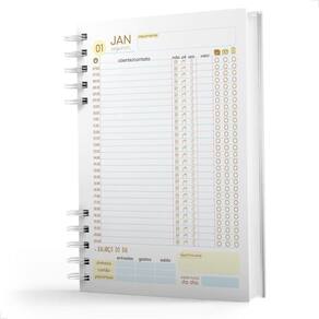 As 386 páginas têm uma gramatura de 75g e são brancas, proporcionando uma superfície perfeita para suas anotações, com um toque de elegância. O acabamento com elástico mantém tudo no lugar e protege suas informações importantes, independentemente de onde você vá. A encadernação em espiral de aço revestido garante durabilidade ao longo do tempo, para que você possa contar com sua agenda por muito tempo.